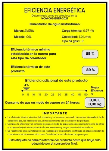 Calentador De Agua Para 1 Servicio de Gas Lp Avera C6l.